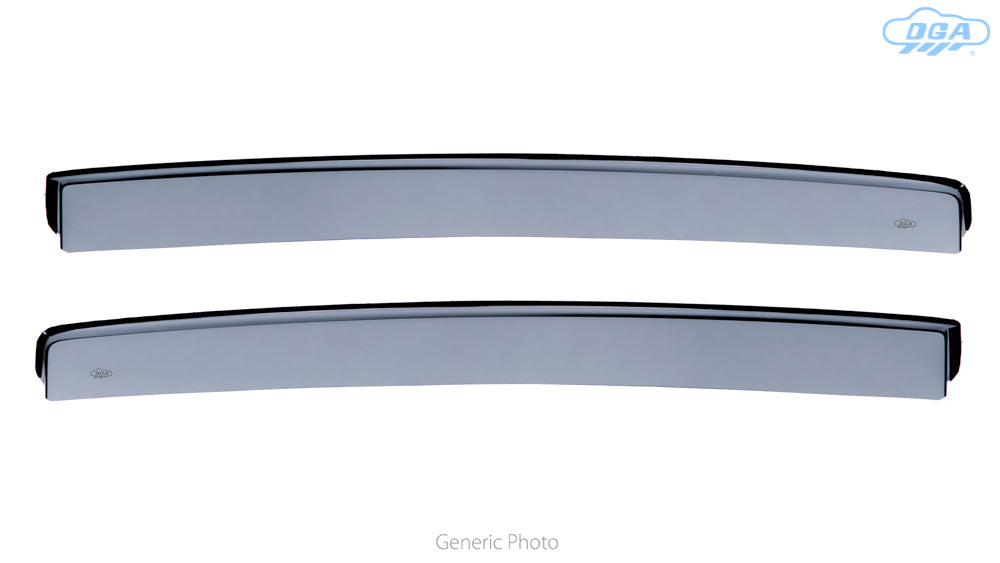 Ανεμοθραύστες παραθύρων από την εταιρία DGA, πορτογαλικής προέλευσης, κατασκευασμένοι από εύκαμπτο χυτό ακρυλικό γυαλί (πλέξιγκλας) με προστασία UV, εξαιρετικής αντοχής σε φιμέ, κατάλληλοι για τις πίσω πόρτες του οχήματός σας. Τοποθετούνται κολλητοί/χωνευτοί μέσα στην υποδοχή του τζαμιού (τσιμούχα παραθύρου) με ταινία διπλής όψης (περιλαμβάνεται στη συσκευασία), χωρίς να επηρεάζουν καθόλου την εύρυθμη λειτουργία του τζαμιού, τον μηχανισμό του παραθύρου ή τις αντιηλιακές μεμβράνες σας (φιλμ παραθύρων).
