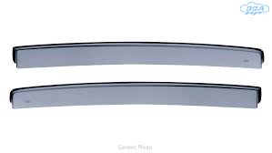 Ανεμοθραύστες παραθύρων από την εταιρία DGA, πορτογαλικής προέλευσης, κατασκευασμένοι από εύκαμπτο χυτό ακρυλικό γυαλί (πλέξιγκλας) με προστασία UV, εξαιρετικής αντοχής σε φιμέ, κατάλληλοι για τις πίσω πόρτες του οχήματός σας. Τοποθετούνται κολλητοί/χωνευτοί μέσα στην υποδοχή του τζαμιού (τσιμούχα παραθύρου) με ταινία διπλής όψης (περιλαμβάνεται στη συσκευασία), χωρίς να επηρεάζουν καθόλου την εύρυθμη λειτουργία του τζαμιού, τον μηχανισμό του παραθύρου ή τις αντιηλιακές μεμβράνες σας (φιλμ παραθύρων).