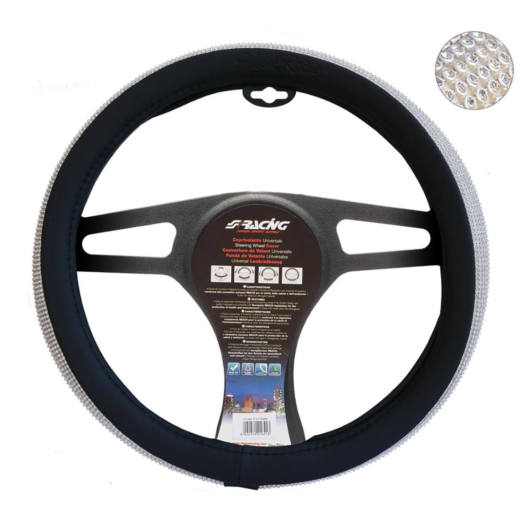 ΚΑΛΥΜΜΑ ΤΙΜΟΝΙΟΥ BLACK AND DIAMONDS ΜΑΥΡΟ ΜΕ ΣΤΡΑΣ ΟΙΚΟΛΟΓΙΚΟ ΔΕΡΜΑ 37-39cm