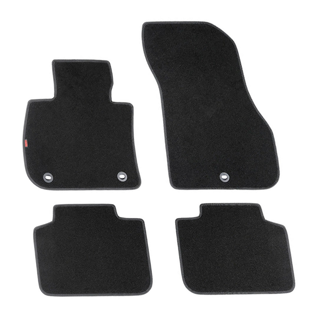 Πατάκια αυτοκινήτου από την εταιρία LAMPA, ιταλικής προέλευσης, κατασκευασμένα από υψηλής ποιότητας μοκέτα - 100% πολυπροπυλένιο - σε μαύρο χρώμα με περιμετρικό φινίρισμα από βελούρ ρέλι (απομίμηση βελούδου), σχεδιασμένα για να ταιριάζουν ακριβώς στις διαστάσεις του δαπέδου του εκάστοτε οχήματος - μαρκέ προϊόν. Είναι αδιάβροχα και διαθέτουν αντιολισθητικό πάτο ενισχυμένο με gel στο πίσω μέρος τους για καλύτερη πρόσφυση στο δάπεδο, καθώς και κουμπιά στερέωσης fix-points για όσα οχήματα είναι εξοπλισμένα με αντίστοιχες εργοστασιακές υποδοχές για να παραμένουν σταθερά στο πάτωμα της καμπίνας κατά την είσοδο/έξοδο των επιβατών.