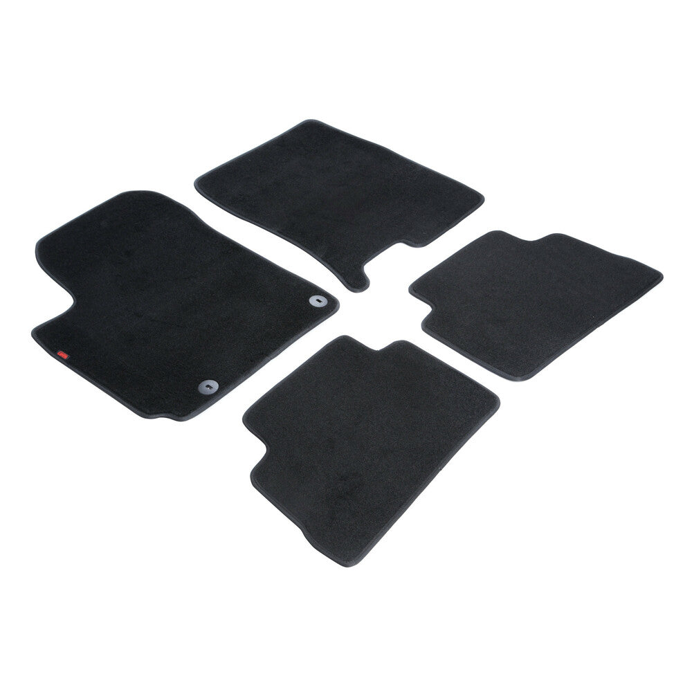 Πατάκια αυτοκινήτου από την εταιρία LAMPA, ιταλικής προέλευσης, κατασκευασμένα από υψηλής ποιότητας μοκέτα - 100% πολυπροπυλένιο - σε μαύρο χρώμα με περιμετρικό φινίρισμα από βελούρ ρέλι (απομίμηση βελούδου), σχεδιασμένα για να ταιριάζουν ακριβώς στις διαστάσεις του δαπέδου του εκάστοτε οχήματος - μαρκέ προϊόν. Είναι αδιάβροχα και διαθέτουν αντιολισθητικό πάτο ενισχυμένο με gel στο πίσω μέρος τους για καλύτερη πρόσφυση στο δάπεδο, καθώς και κουμπιά στερέωσης fix-points για όσα οχήματα είναι εξοπλισμένα με αντίστοιχες εργοστασιακές υποδοχές για να παραμένουν σταθερά στο πάτωμα της καμπίνας κατά την είσοδο/έξοδο των επιβατών.
