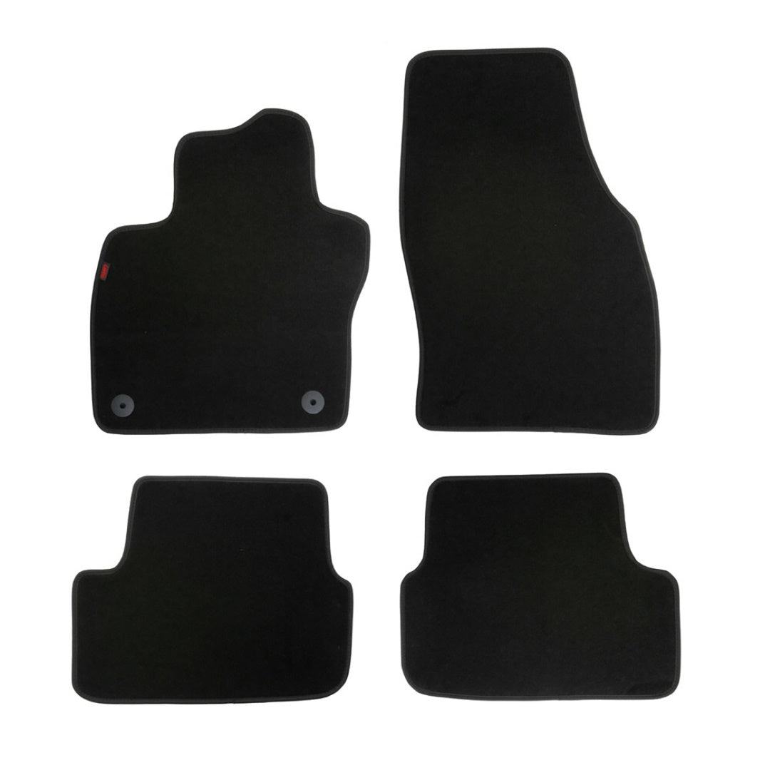 Πατάκια αυτοκινήτου από την εταιρία LAMPA, ιταλικής προέλευσης, κατασκευασμένα από υψηλής ποιότητας μοκέτα - 100% πολυπροπυλένιο - σε μαύρο χρώμα με περιμετρικό φινίρισμα από βελούρ ρέλι (απομίμηση βελούδου), σχεδιασμένα για να ταιριάζουν ακριβώς στις διαστάσεις του δαπέδου του εκάστοτε οχήματος - μαρκέ προϊόν. Είναι αδιάβροχα και διαθέτουν αντιολισθητικό πάτο ενισχυμένο με gel στο πίσω μέρος τους για καλύτερη πρόσφυση στο δάπεδο, καθώς και κουμπιά στερέωσης fix-points για όσα οχήματα είναι εξοπλισμένα με αντίστοιχες εργοστασιακές υποδοχές για να παραμένουν σταθερά στο πάτωμα της καμπίνας κατά την είσοδο/έξοδο των επιβατών.