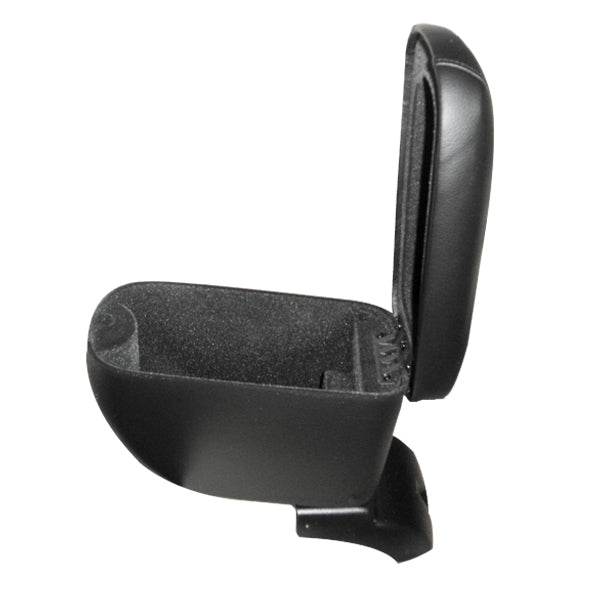 Είναι κατασκευασμένος από ποιοτικό πλαστικό σε συνδυασμό με οικολογικό τεχνόδερμα (συνθετική δερματίνη) σε μαύρο χρώμα με μαύρες ραφές και ειδικά σχεδιασμένος για να ταιριάζει τέλεια στο εκάστοτε όχημα. Διαθέτει πολύ μαλακό καπάκι με δυνατότητα ανοίγματος έως 90 μοίρες, εσωτερικό αποθηκευτικό χώρο, σύστημα ανάκλισης για δυνατότητα ανασήκωσης κάθετα ανάμεσα από τα καθίσματα (90 μοίρες) και η βάση τοποθετείται με 4 βίδες εξωτερικά από τη πίσω ποτηροθήκη (τη καλύπτει πλήρως).