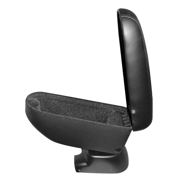 Είναι κατασκευασμένος από ποιοτικό πλαστικό σε συνδυασμό με οικολογικό τεχνόδερμα (συνθετική δερματίνη) σε μαύρο χρώμα με μαύρες ραφές και ειδικά σχεδιασμένος για να ταιριάζει τέλεια στο εκάστοτε όχημα. Διαθέτει πολύ μαλακό καπάκι με δυνατότητα ανοίγματος έως 90 μοίρες, εσωτερικό αποθηκευτικό χώρο, σύστημα ανάκλισης για δυνατότητα ανασήκωσης κάθετα ανάμεσα από τα καθίσματα (90 μοίρες) και η βάση τοποθετείται με 4 βίδες εξωτερικά από τη πίσω ποτηροθήκη (τη καλύπτει πλήρως).