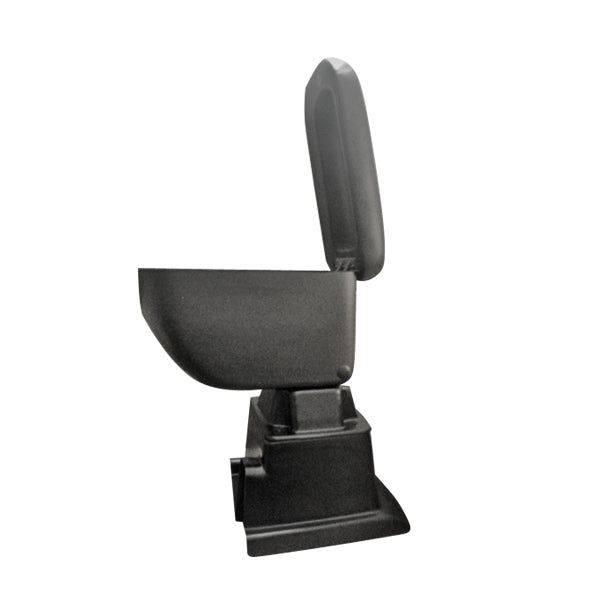 Είναι κατασκευασμένος από ποιοτικό πλαστικό σε συνδυασμό με οικολογικό τεχνόδερμα (συνθετική δερματίνη) σε μαύρο χρώμα με μαύρες ραφές και ειδικά σχεδιασμένος για να ταιριάζει τέλεια στο εκάστοτε όχημα. Διαθέτει πολύ μαλακό καπάκι με δυνατότητα ανοίγματος έως 90 μοίρες, εσωτερικό αποθηκευτικό χώρο, σύστημα ανάκλισης για δυνατότητα ανασήκωσης κάθετα ανάμεσα από τα καθίσματα (90 μοίρες) και η βάση τοποθετείται με 4 βίδες εξωτερικά από τη πίσω ποτηροθήκη (τη καλύπτει πλήρως).