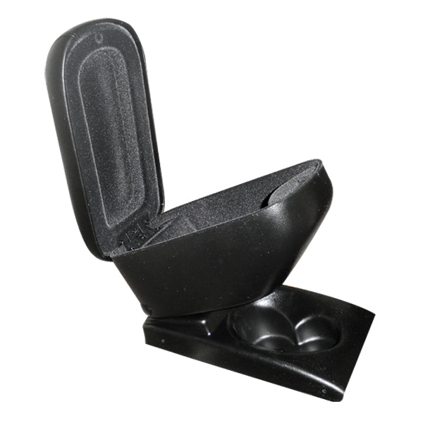 Είναι κατασκευασμένος από ποιοτικό πλαστικό σε συνδυασμό με οικολογικό τεχνόδερμα (συνθετική δερματίνη) σε μαύρο χρώμα με μαύρες ραφές και ειδικά σχεδιασμένος για να ταιριάζει τέλεια στο εκάστοτε όχημα. Διαθέτει πολύ μαλακό καπάκι με δυνατότητα ανοίγματος έως 90 μοίρες, εσωτερικό αποθηκευτικό χώρο, σύστημα ανάκλισης για δυνατότητα ανασήκωσης κάθετα ανάμεσα από τα καθίσματα (90 μοίρες) και η βάση τοποθετείται με 4 βίδες εξωτερικά από τη πίσω ποτηροθήκη (τη καλύπτει πλήρως).