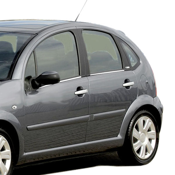 TRIM ΜΑΡΚΕ ΠΑΡΑΘΥΡΩΝ ΑΥΤΟΚΟΛΛΗΤΑ ΧΡΩΜΙΟΥ ΜΕΤΑΛΛΙΚΑ ΓΙΑ CITROEN C3 5D 2002-2009 4ΤΕΜ.